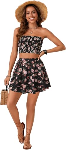• Features:Floral print crop tops and mini skirt set, perfect for beach trips, music festivals, or summer dates. The tube design shows off shoulders and collarbones, embracing summer’s carefree vibe. Ruffle layered design can hide tummy and belly fat, making you look slimmer.