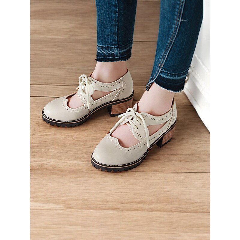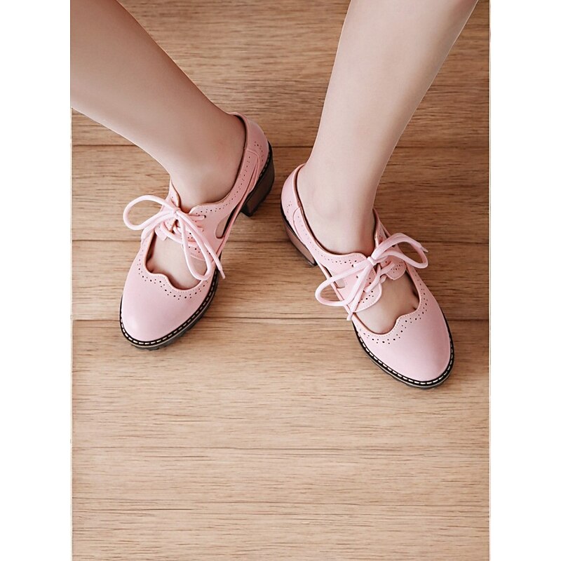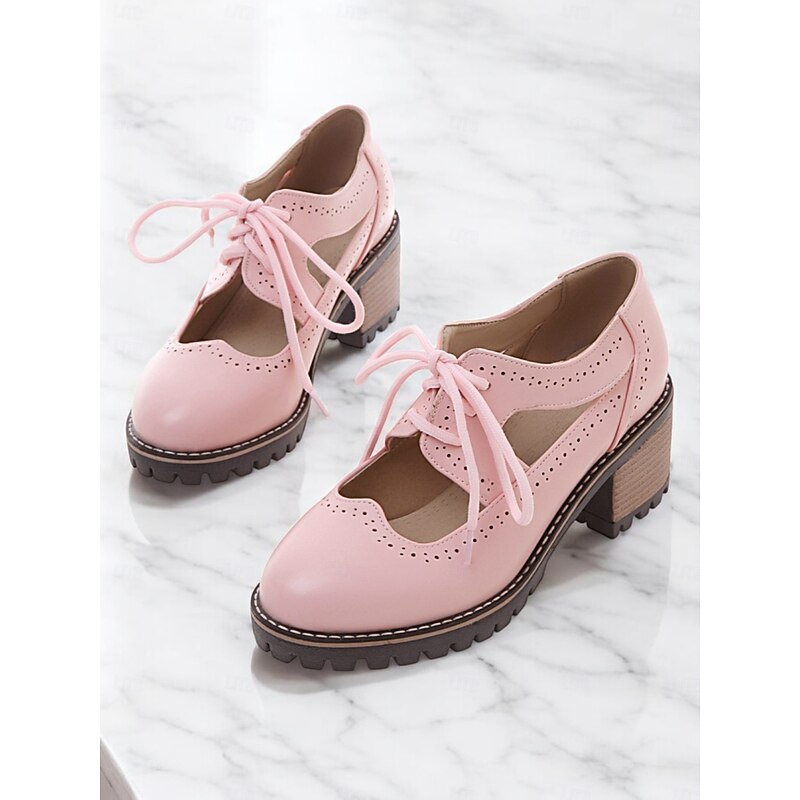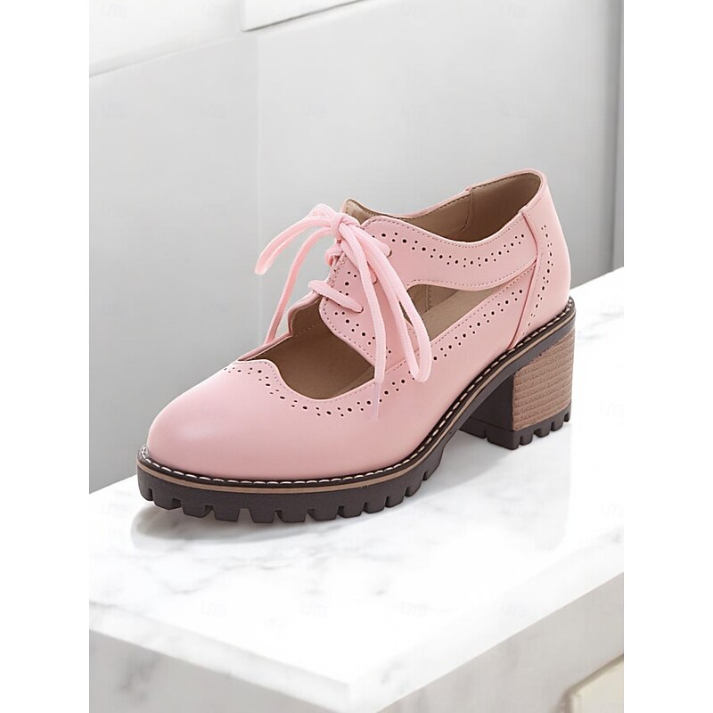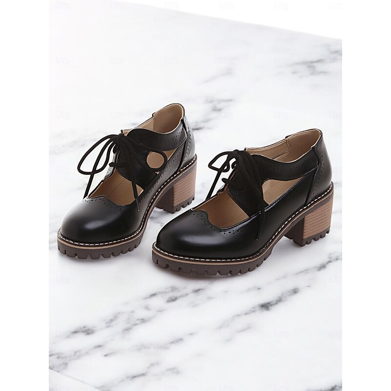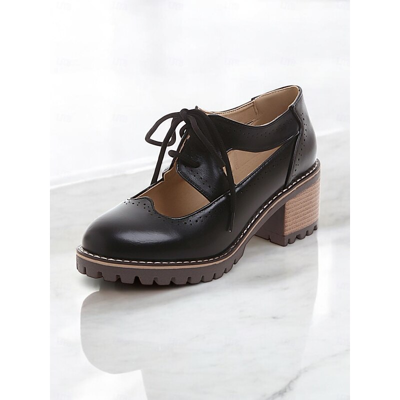 Highlights [Fabric] : Crafted from high-quality PU upper and synthetic leather lining, these Women's Oxford Shoes offer a luxurious feel and durability, ensuring comfort throughout the day. [Silhouette] : Featuring a timeless round toe design, these shoes provide a comfortable fit and a chic, vintage-inspired look. The chunky heel adds a bit of height while maintaining stability, perfect for everyday wear. [Design Highlights] : The shoes boast an elegant lace-up detail, paired with delicate cut-out perforations that add a touch of sophistication and vintage charm to the overall aesthetic. The durable rubber outsole with a ridged pattern ensures excellent traction. [Occasions] : Ideal for both casual and formal settings, whether it's a day at the office, a weekend outing, or a seasonal event. These versatile shoes can effortlessly complement any outfit, making them a staple in your wardrobe. [Size Notice] : Available in a range of sizes from US5.5 to US10.5, these shoes fit true to size; we recommend selecting your usual size for the best fit. Perfect for everyday use. superior materials and excellent craftsmanship ensure long-lasting durability.