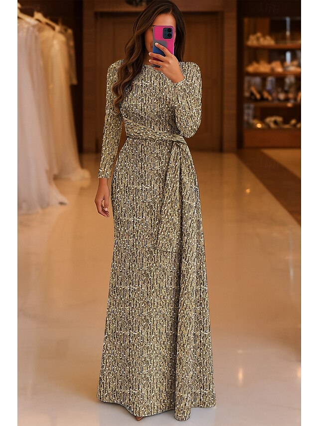 Bead-embellished Gold Jersey A-Line Evening Gown Elegant Dress Formal Wedding Floor Length Sleeveless Sweetheart Satin with Bow Knot 1