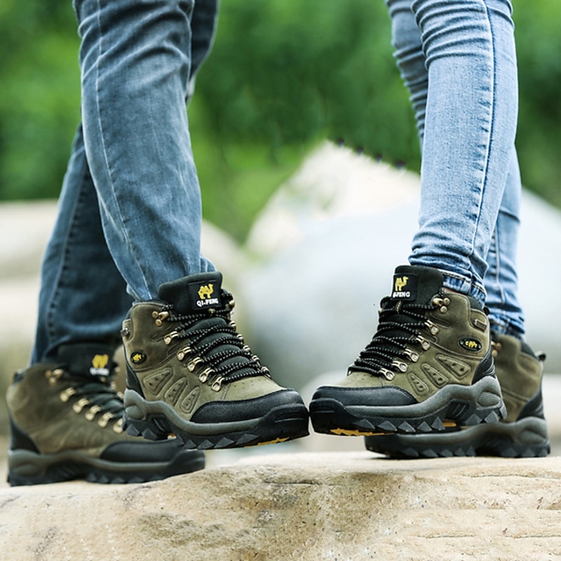 Highlights [Fabric and Materials] : Crafted with a durable cowhide upper, these men's hiking boots are built to withstand rugged terrains while ensuring breathability. The interior is lined with fabric for enhanced moisture management, keeping your feet comfortable during long hikes. The EVA midsole provides excellent shock absorption, while the high-traction rubber outsole offers a secure grip on various surfaces. [Fit and Style] : These boots feature a classic round toe design and a robust build that combines flexibility and durability. The padded collar and tongue provide extra comfort and ankle support, ensuring a snug and secure fit for all-day wear. [Design Highlights] : Reinforced stitching and protective black rubber overlays not only enhance the boots’ rugged aesthetic but also increase their resistance to abrasions. Metal eyelets and sturdy laces provide reliable fastening, while the windproof construction ensures functionality across different weather conditions. [Occasions] : Perfect for outdoor enthusiasts, these hiking boots are designed for a range of activities such as climbing, hiking, camping, and even caving. Whether tackling challenging trails or enjoying a leisurely walk in the wilderness, these boots offer both practicality and style during spring, summer, and fall adventures. [Size Range] : Available in a variety of colors including Coffee, Army Green, and Grey, these boots come in sizes 36 to 44, ensuring a fit for a wide range of adult men.