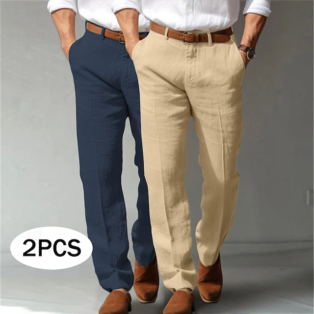 More information about Men's Linen Pants Trousers Dress Pants Summer Pants Front Pocket Straight Leg Multi-pack Plain Comfort Breathable Full Length Formal Business Holiday Fashion Basic Black+Light Grey Blue+Dark Grey