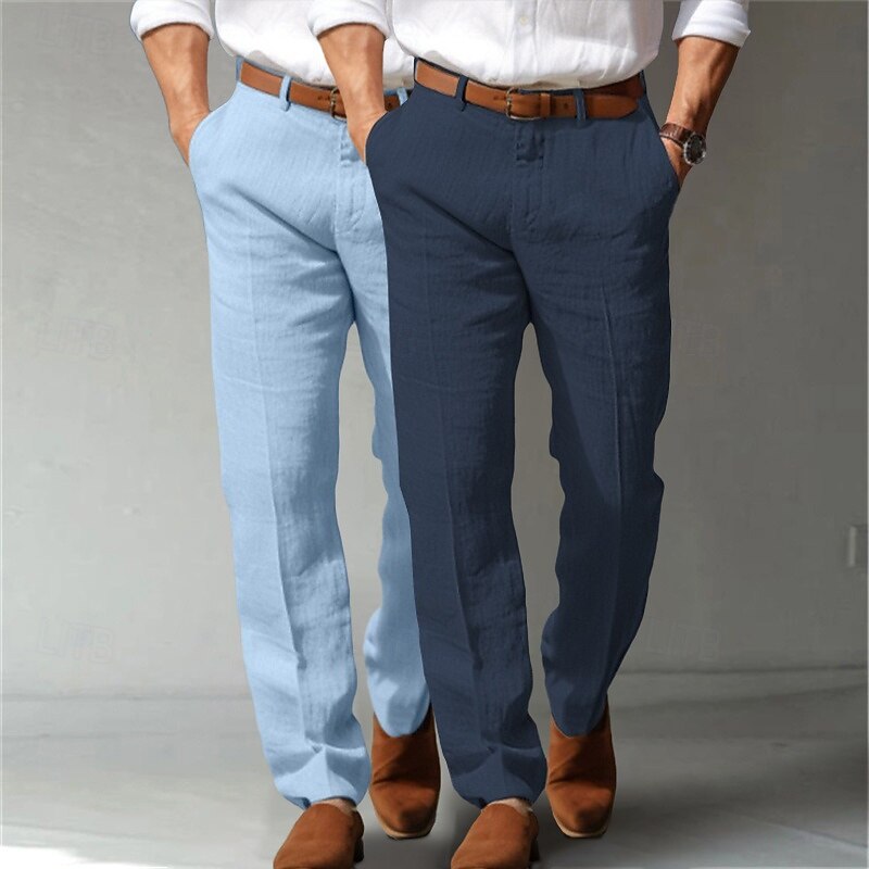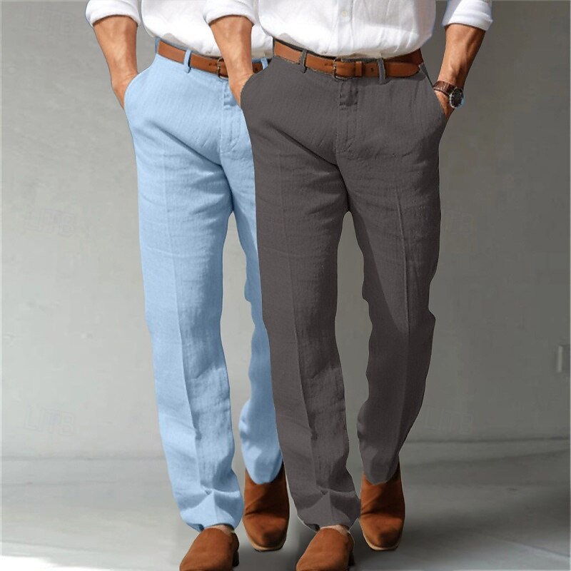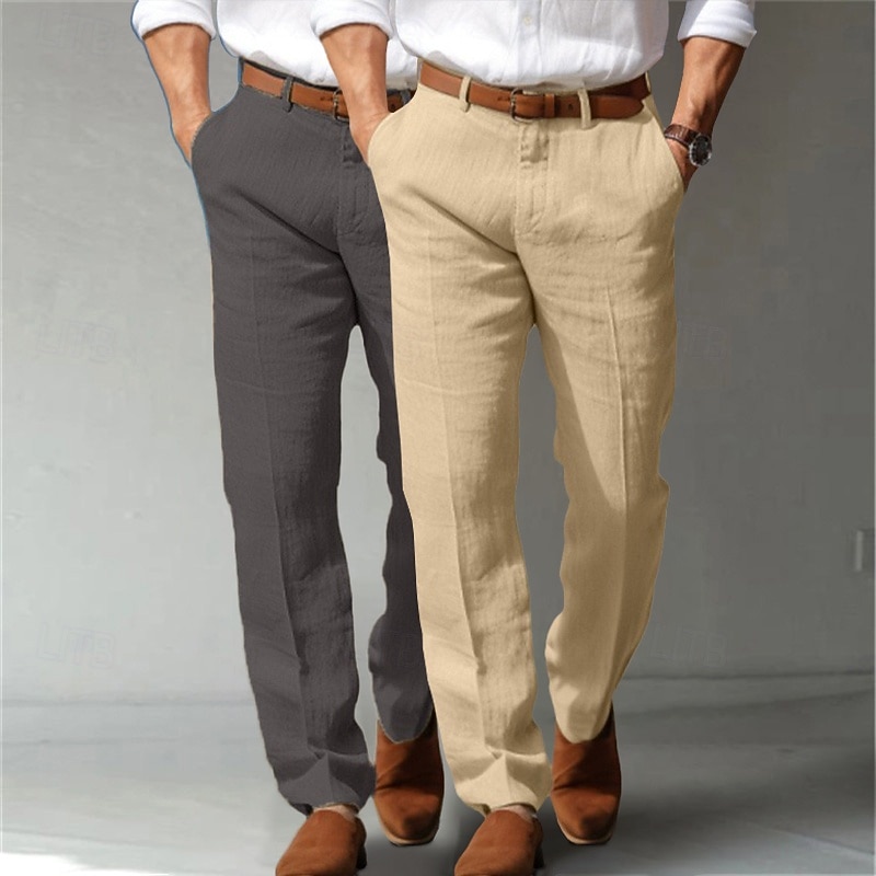 HOT ! Men's Linen Pants Trousers Dress Pants Summer Pants Front Pocket Straight Leg Multi-pack Plain Comfort Breathable Full Length Formal Business Holiday Fashion Basic Black+Light Grey Blue+Dark Grey