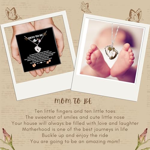 HOT ! LOTUS-A Mom To Be Gift - Baby Feet Pendant Necklace with a Message Card Pregnancy Present for First Time Moms Expecting Women Pregnant Wife Sister Daughter Mother's Day Christmas Birthday