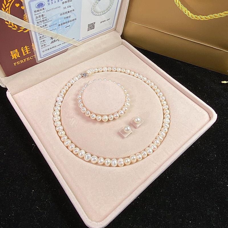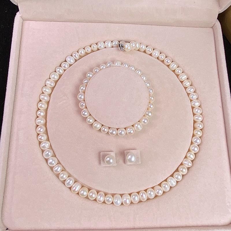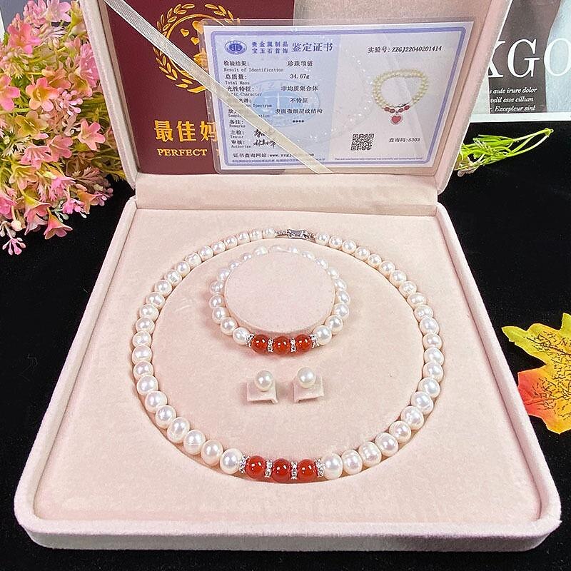 Women's Day Gifts Natural Freshwater Pearl Necklace Green Chalcedony Pendant White Pearl Bracelet Set As A Gift For Mothers And Mother-in-law On Mother's Day Mother's Day Gifts for MoM 54