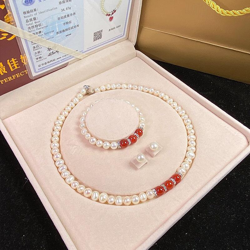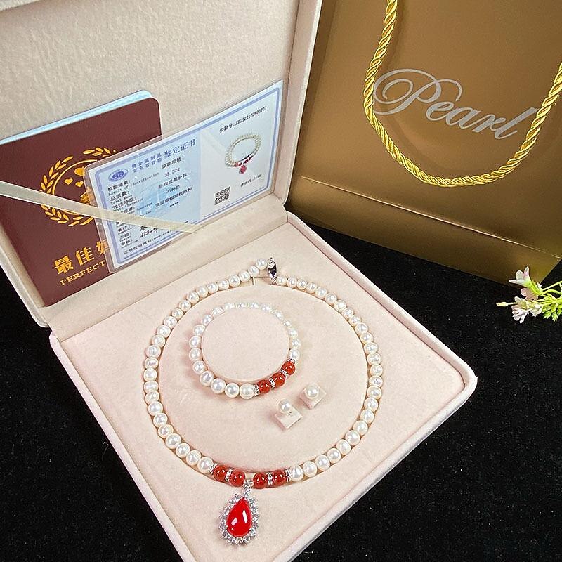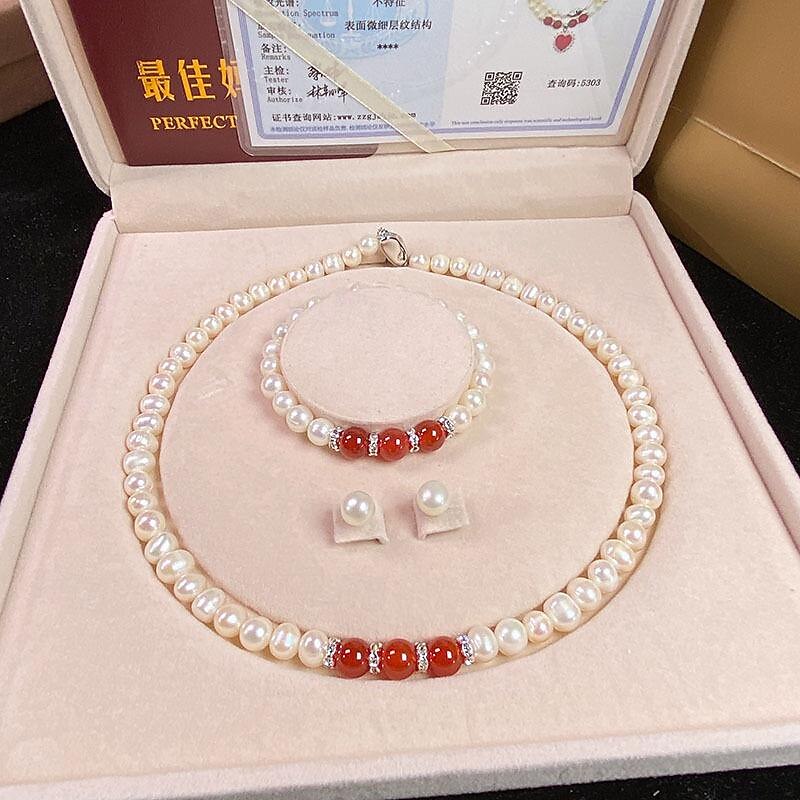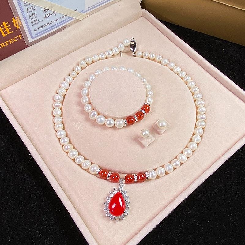 Women's Day Gifts Natural Freshwater Pearl Necklace Green Chalcedony Pendant White Pearl Bracelet Set As A Gift For Mothers And Mother-in-law On Mother's Day Mother's Day Gifts for MoM 9