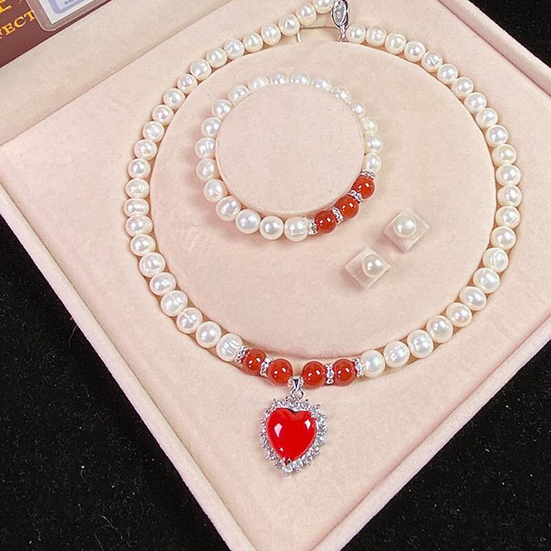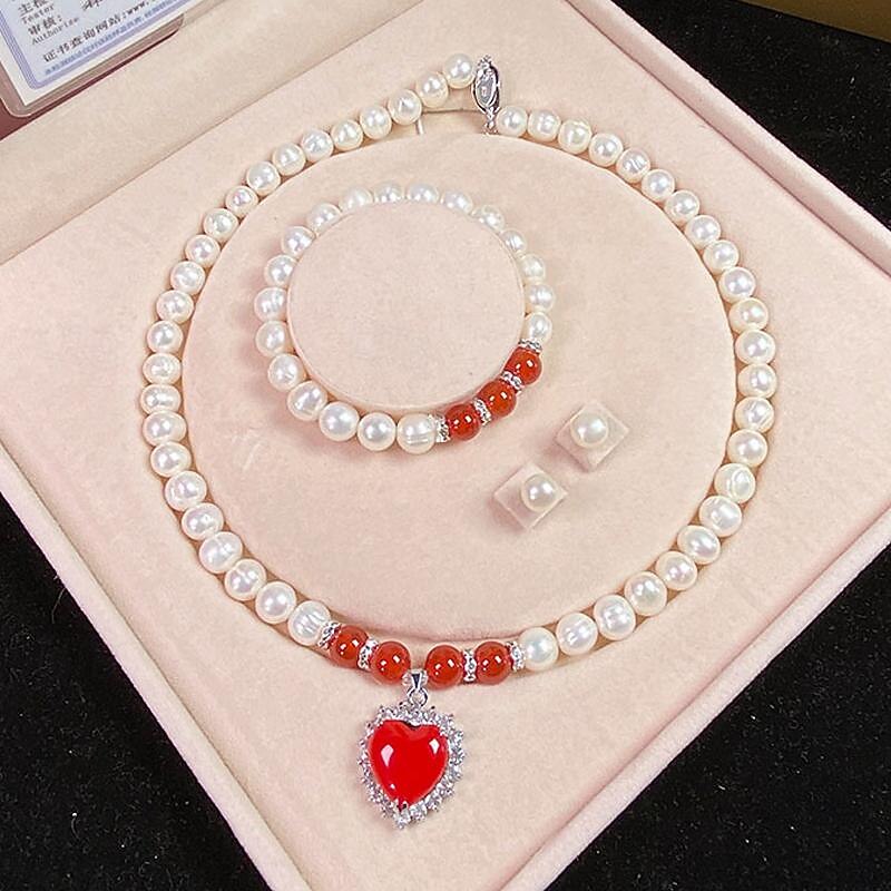 Women's Day Gifts Natural Freshwater Pearl Necklace Green Chalcedony Pendant White Pearl Bracelet Set As A Gift For Mothers And Mother-in-law On Mother's Day Mother's Day Gifts for MoM 34