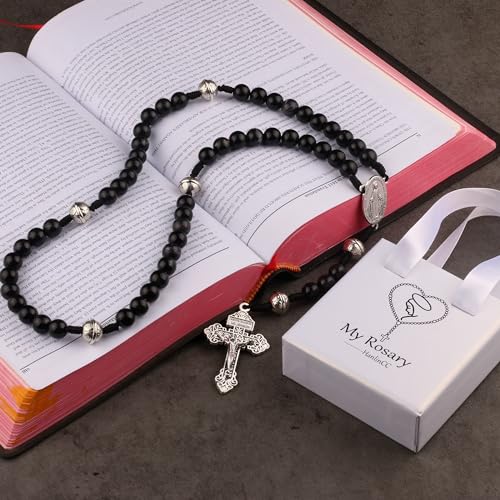 • HanlinCC Catholic Miraculous Rosary, the Glory Beads is 12mm Zinc Alloy with Anti-Silver Plated Beads, rosary length is 46cm (18 inches), rosary unit weight is 60 grams (0.132 lbs), the rosary on cord is handmade, very strong and stunning;