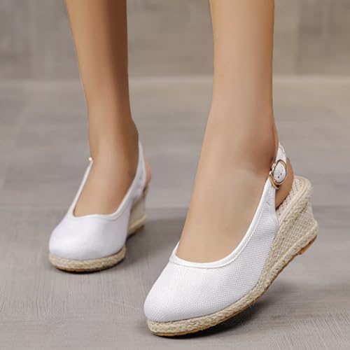 HOT ! Women's Closed Toe Elastic Ankle Strap Espadrilles Low Wedge Sandals with Buckle Ankle Strap Slingback Casual Dressy Summer Platform Shoes Supportive Non-Slip Comfortable Flip Flops