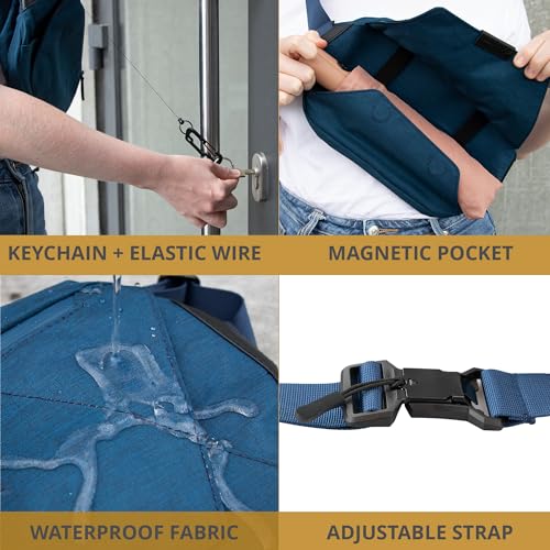 • MULTIFUNCTIONAL - Multifuntional key tools are included on the inside of this fanny pack. Also the elastic straps and magnets make it easily to hold a jacket or umbrella. Never forget your stuff when going out, they are easy secured to your sling bag!