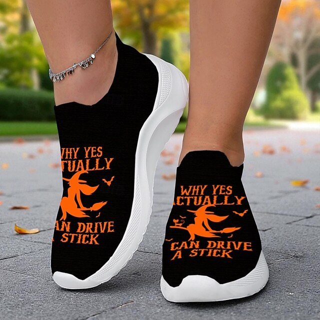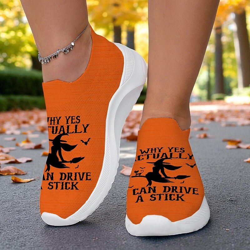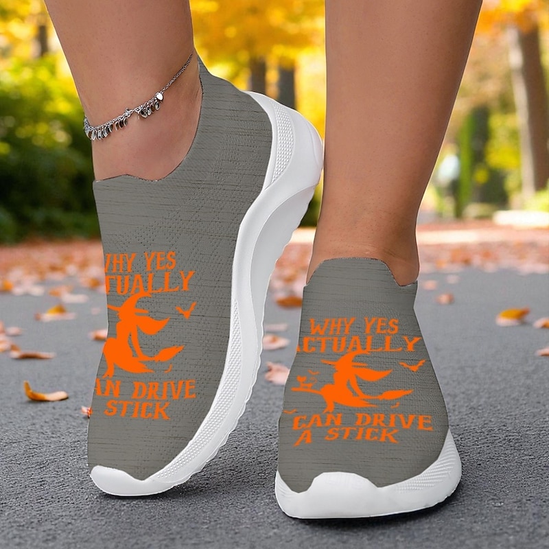 $32.99 - Women's Flyknit Slip-On Sneakers with Funny "Can Drive a Stick" Witch Print – Halloween Comfort Walking Shoes for Parties and Daily Outfits 2025. Shop for cheap Shoes For Women online? Buy at lightinthebox.com on sale today!
