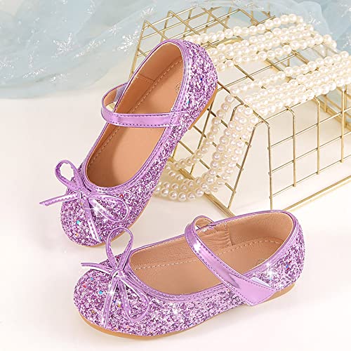Children's Girls Wedding Shoes Flower Child Shoes Sequins Fine Glitter Bow Girl Princess Shoes Metallic Sandals 5