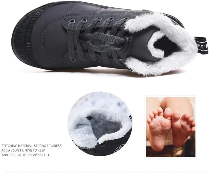 More information about Winter Kids Boys Girls Snow Boots, Warm Cozy Non-Slip High Top Boots, Plush Comfy Outdoor Hiking Shoes, Lined Trekking Shoes
