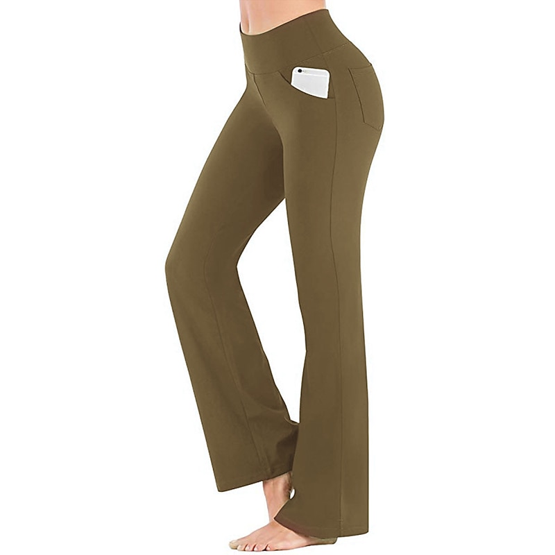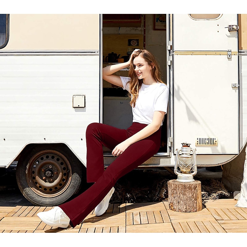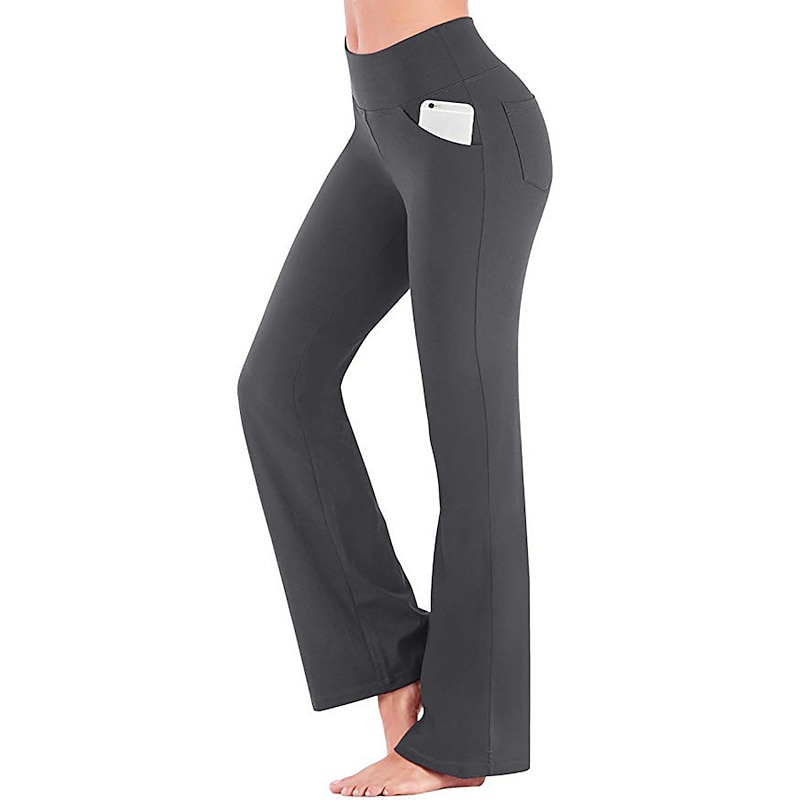 More information about Women's High Waist Yoga Pants Side Pockets Bootcut Leggings Tummy Control 4 Way Stretch Quick Dry Dark Grey Wine Fitness Gym Workout Dance Summer Sports Activewear High Elasticity