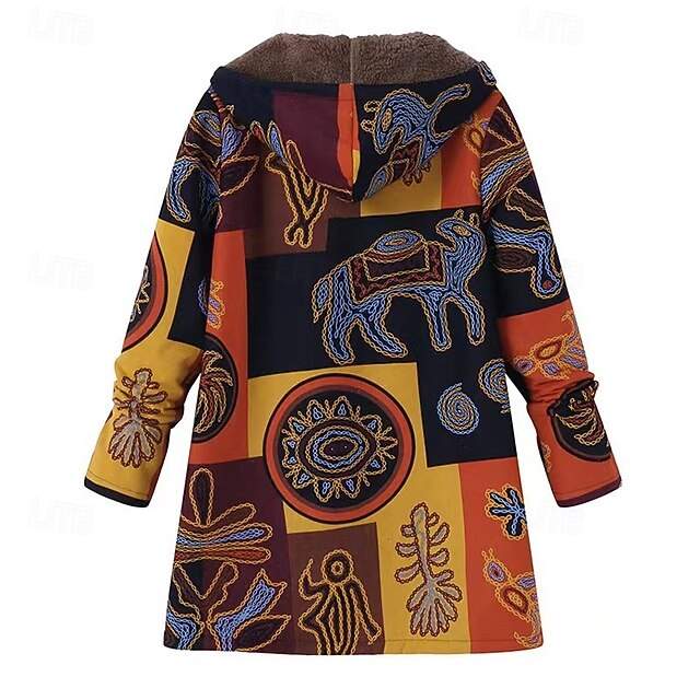 More information about Women's Fleece Jacket Coat Hoodie Jacket Warm Comfortable Zipper Pocket Vintage Fashion Casual Animal Going out Weekend Zipper Regular Hooded Regular Fit Long Sleeve Outerwear Yellow Red Winter