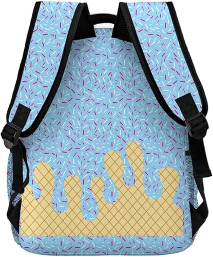Ice Cream Drip Backpack for Boys Girls: The cheerful design and vibrant colors make this both a practical accessory and delightful gift for ice cream lovers of all agesSpacious & Well-Organized Design: The ice cream drip backpack features 1 large main compartment, 4 inner small pockets, 2 side mesh pockets, and 1 front zipper pocket to neatly store and quickly access all your essentials - perfect for school, travel or daily adventuresComfort & Adjustability: Designed with adjustable padded reinforced shoulder straps and a detachable chest clip. Padded, adjustable shoulder straps distribute weight evenly while breathable back padding keeps you cool. Includes a top webbing loop for easy grab/hang, ensuring soft all-day useUltra-Lightweight & Versatile: Crafted as a light and handy daypack. Ideal for school, college, work, travel, hiking, camping, trekking, shopping, cycling, weekend getaways, and other outdoor activities. Effortless to carry dailyDurable & Waterproof Material: Made of high-end ultra-strong polyester canvas or durable twill weave with waterproof braid and netting. Features smooth, abrasion-resistant zippers and reinforced construction for extra long life, preventing tears and rips Perfect for everyday use. superior materials and excellent craftsmanship ensure long-lasting durability.