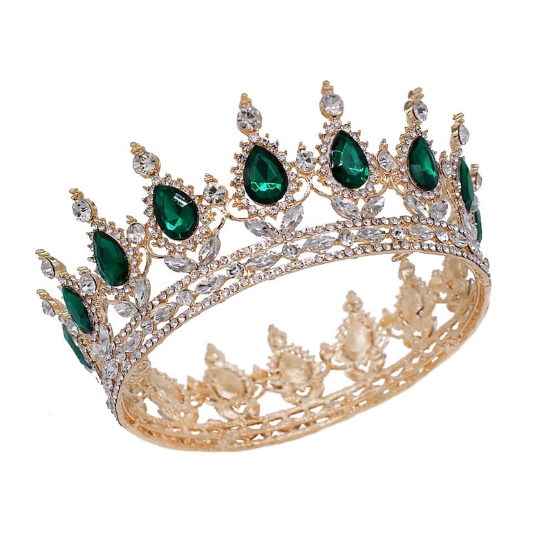 More information about Crown Headdress Bride Golden Red Diamond Crystal Round Crown Full Crown Birthday Performance Accessories Hair Accessories