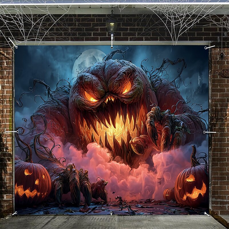 Halloween Tapestry Garage Door Cover Large Hanging Backdrop Pumpkin 3D Dark Punk Gothic Style Party Outdoor Shooting Backgrounds Yard Haunted House Home Decor 9