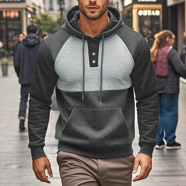 More information about Men's Hoodie Pullover Hoodie Sweatshirt Fleece Hoodie Red Navy Blue Khaki Gray Hooded Color Block Pocket Work Sports & Outdoor Casual Basic Casual Workout Fall Winter Clothing Apparel Hoodies