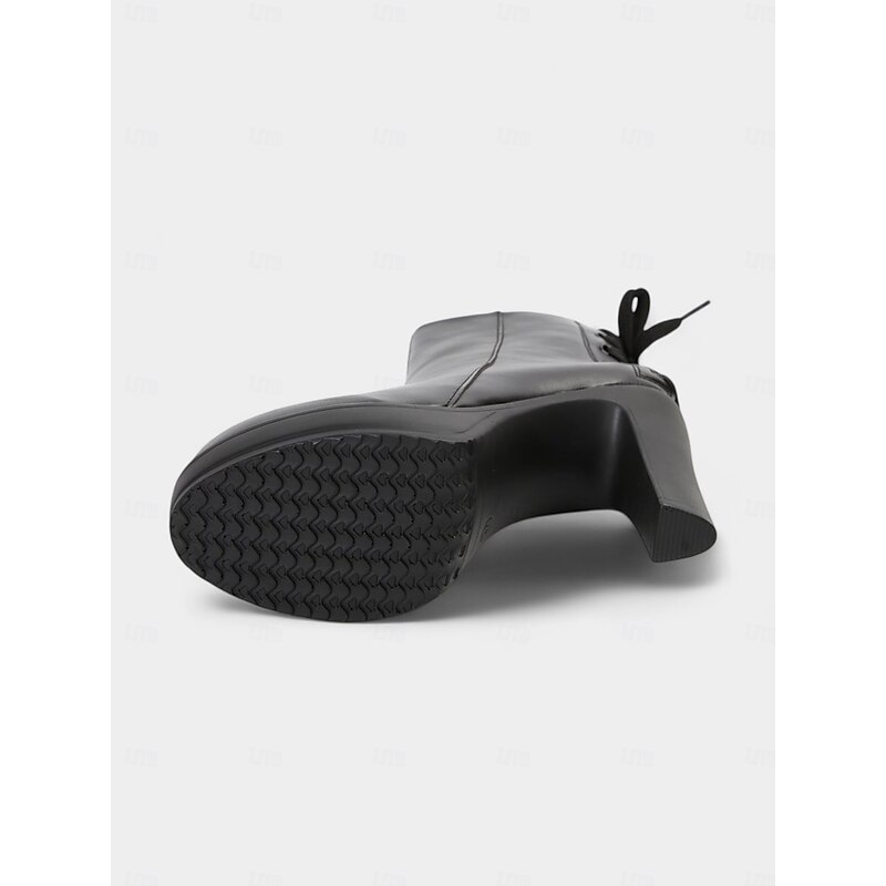 Women's Black Faux Leather Platform Ankle Boots – High Heel Side Zip Lace-Up Back Dress Booties for Party, Night Out and Fall Fashion 10