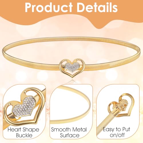 Women Skinny Metal Waist Belt, Elastic Heart Shaped Rhinestone Chain Belt Crystal Rope Belt for Dress 3