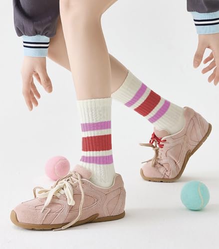 Women Striped Retro Novelty Socks Slouch Socks Athletic Calf Tube Cotton Socks 7