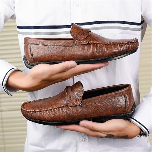 Mens Loafers PU Stitching Details Round Toe Woven Grain Flexible Resistant Lightweight Flat Heel relaxing Driving enduring Slip On