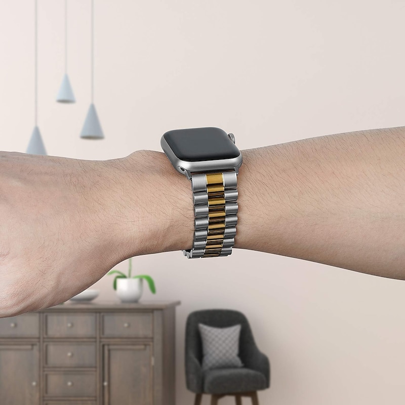 HOT ! Link Bracelet Compatible with Apple Watch band 38mm 40mm 41mm 42mm 44mm 45mm 49mm Men Two Tone Metal Clasp Stainless Steel Strap Replacement Wristband for iwatch Ultra 2 Series 9 8 7 SE 6 5 4 3 2 1