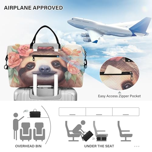 Large Travel Duffel Bag, Penoy Red Cute Sloth Sport Tote Gym Bag, Shoulder Weekender Overnight Bag for Women Men, Carry On Luggage with Toiletry Bag 6