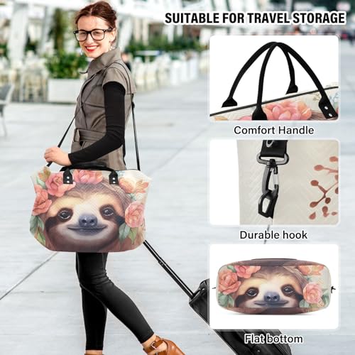Large Travel Duffel Bag, Penoy Red Cute Sloth Sport Tote Gym Bag, Shoulder Weekender Overnight Bag for Women Men, Carry On Luggage with Toiletry Bag 7