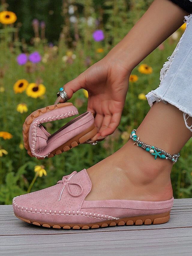 Women's Pink Foldable Slip-On Mules – Lightweight Perforated Moccasins for Casual Wear, Driving and Outings 20