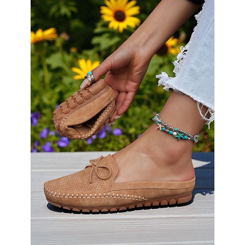 More information about Women's Pink Foldable Slip-On Mules – Lightweight Perforated Moccasins for Casual Wear, Driving and Outings