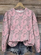 More information about Women's Pullover Sweatshirt Hoodies Floral Graphic Fashion Casual Long Sleeve Crew Neck Regular Tops Street Dailywear Print Pink Fuchsia Gray Spring Fall Winter
