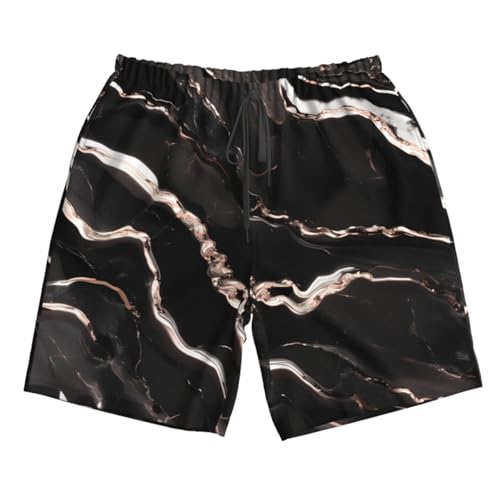 HOT ! Black Rose Gold Marble Print Stylish Men Beach Shorts Lightweight Cozy Swim Trunks Summer Casual Outings Holiday