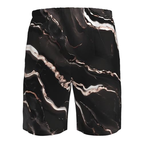 Black Rose Gold Marble Print Stylish Men Beach Shorts Lightweight Cozy Swim Trunks Summer Casual Outings Holiday 2