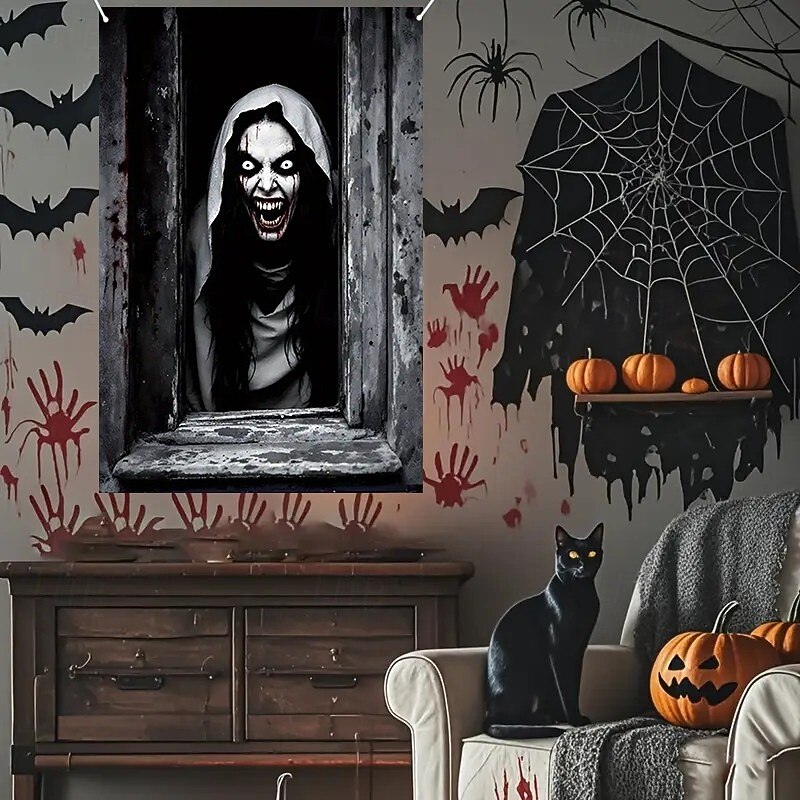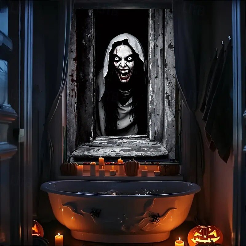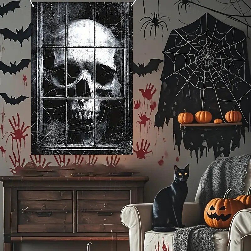 $15.99 - Halloween Window Curtain Giant Skull Behind Broken Glass, Creepy , Scary Door Cover, Window cover, Wall Tapestry for 2025 Halloween Spooky Home Decoration 2025. Shop for cheap Halloween Door Covers online? Buy at lightinthebox.com on sale today!
