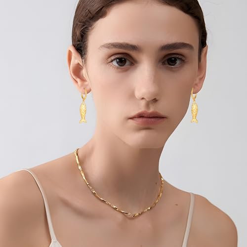 YUJIGold Fish Earrings for Women Fishbone Dangle Earring Huggie Hoops with Cute Charm Chic Ocean Jewelry 7