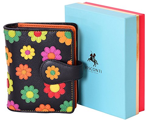 HOT ! Visconti Sunshine DS-80 Womens Floral Multi Colored Bifold Wallet - Black Multi