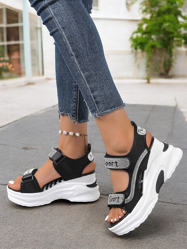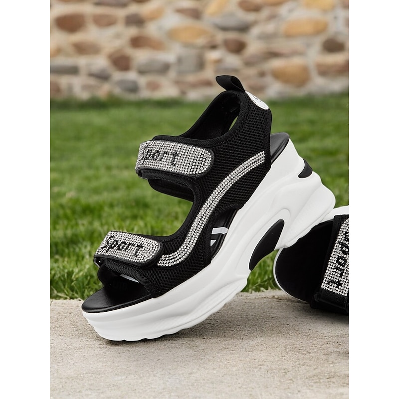 Women's Sporty Platform Sandals with Mesh Straps and Rhinestone Accents – Comfortable Wedge Design for Casual Wear, Travel and Outdoor Activities 1