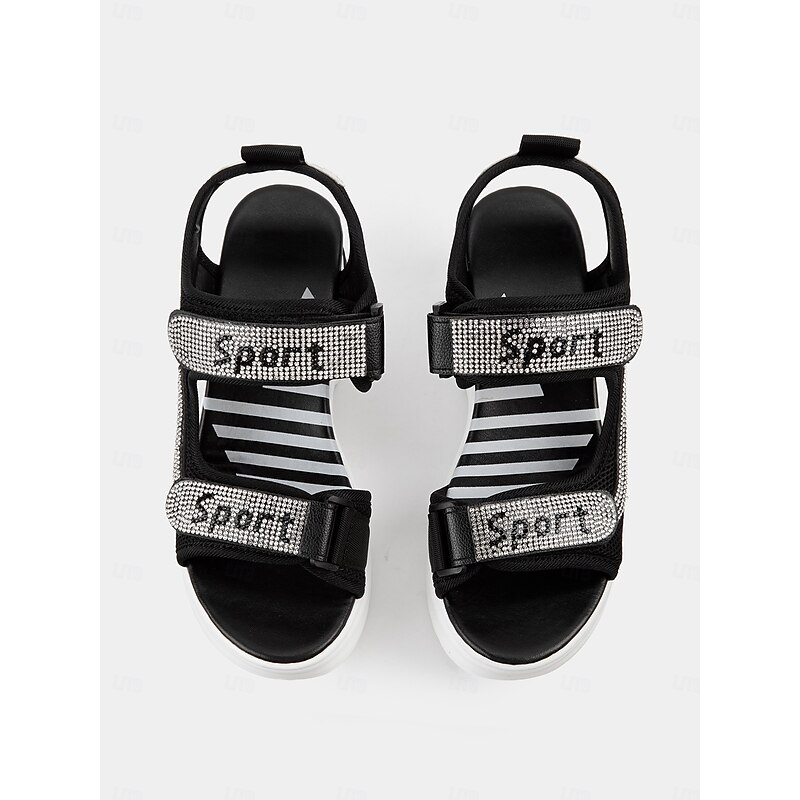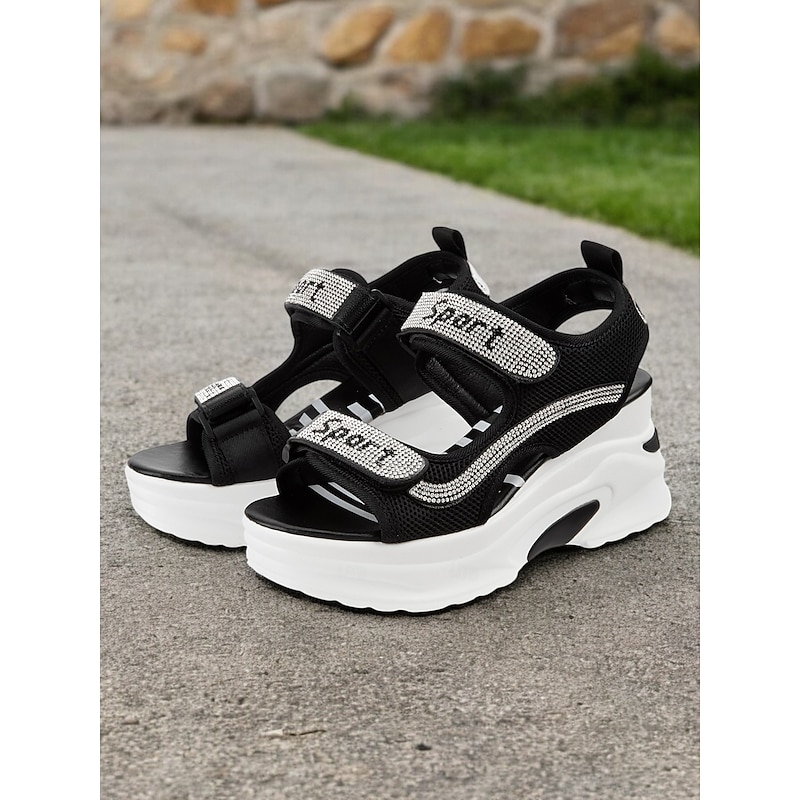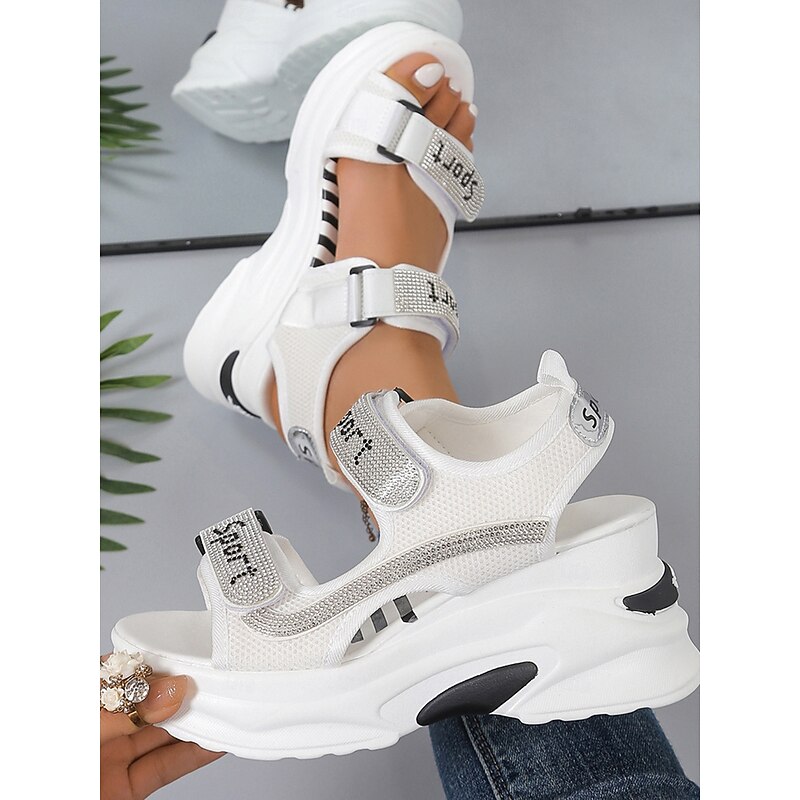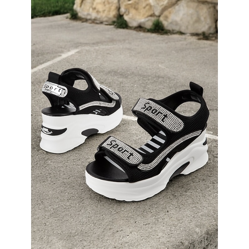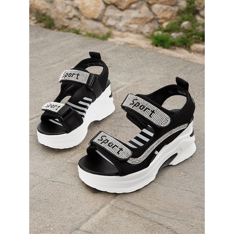 HOT ! Women's Sporty Platform Sandals with Mesh Straps and Rhinestone Accents – Comfortable Wedge Design for Casual Wear, Travel and Outdoor Activities