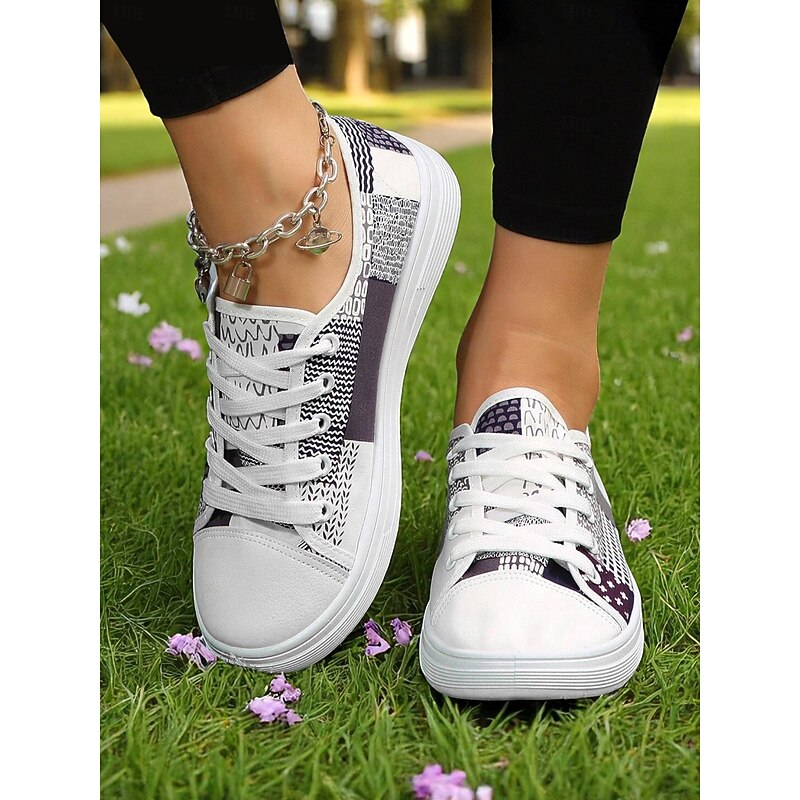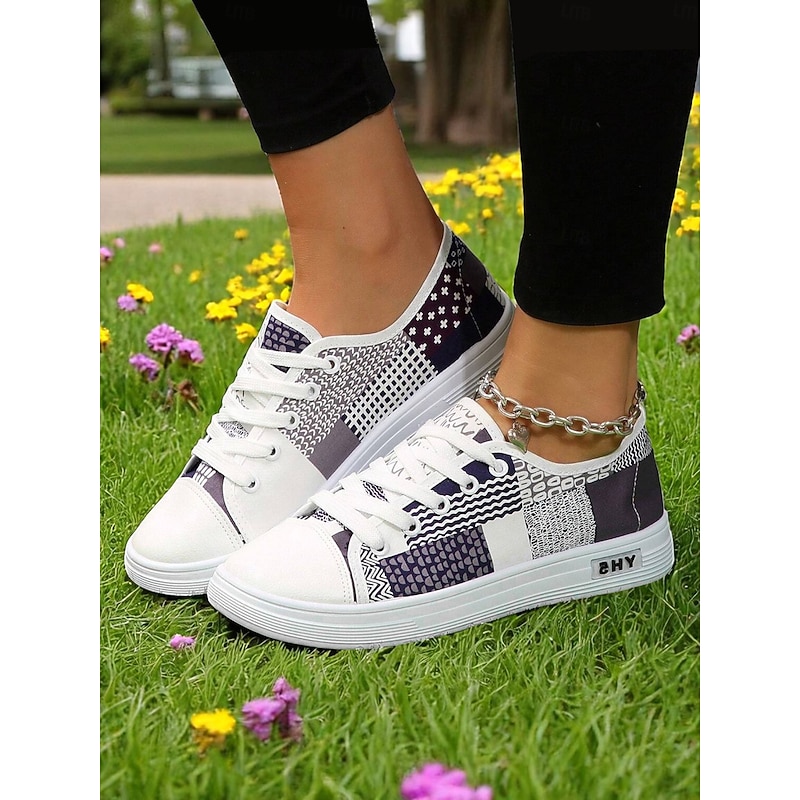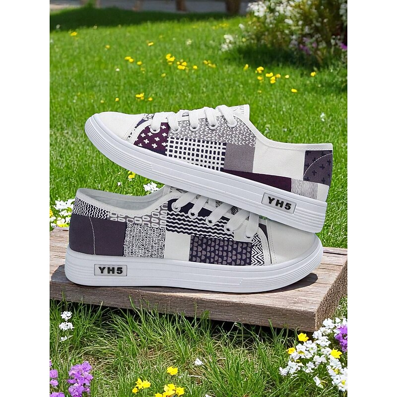Women's Colorblock Canvas Sneakers – Lightweight Lace-Up Casual Shoes for Daily Wear, Travel and Street Style 19