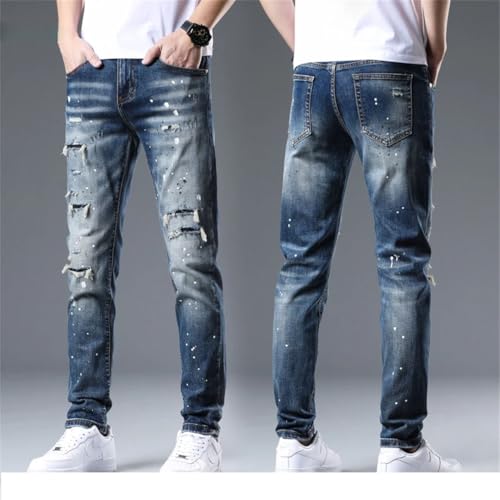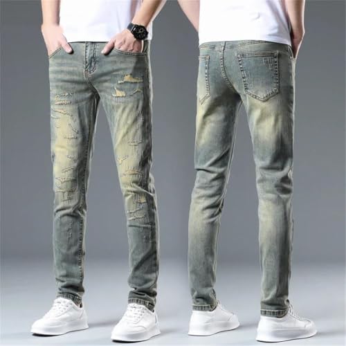 trending ! Men Spring Distressed Ripped Skinny Stretch Vintage Streetwear Patchwork Jeans