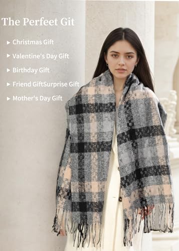 • High Qualtty Material: Winter Plaid scarf is and is 79" x 23" with tassel. This Long Plaid Winter Scarf for Women is cozy, warm, extremely soft to this skin, wear this blanket scarf giving you lasting warmth and style during the cold winter