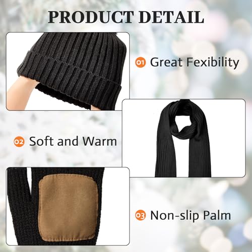 • Function: The anti-slip and touchscreen gloves are designed to provide a secure grip, ensuring that you won't drop your phone or other items even in slippery conditions. The special fingertips allow you to use your touchscreen devices without having to take off your gloves. Beani hat keeps your head and ears warm, while the scarf can be wrapped around your neck multiple times for added warmth. Together, these items offer both style and practicality.