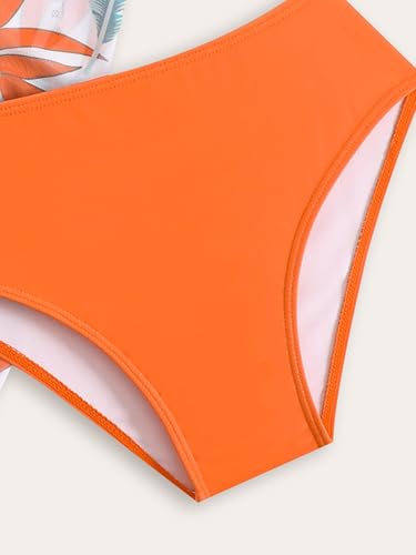 Kids Girls 3Pcs Straps Swim Top with Bottom and Beach Skirt Cover Up Swimwear Tropical Printed Swimsuit 6