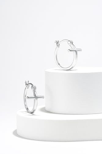 MORGAN & PAIGE .925 Sterling Silver Rhodium Plated Cross Circle Hoop Earrings or Small Stud Earrings for Women - Lightweight Dainty Sterling Silver Earrings, Hypoallergenic Religious Faith Jewelry 6