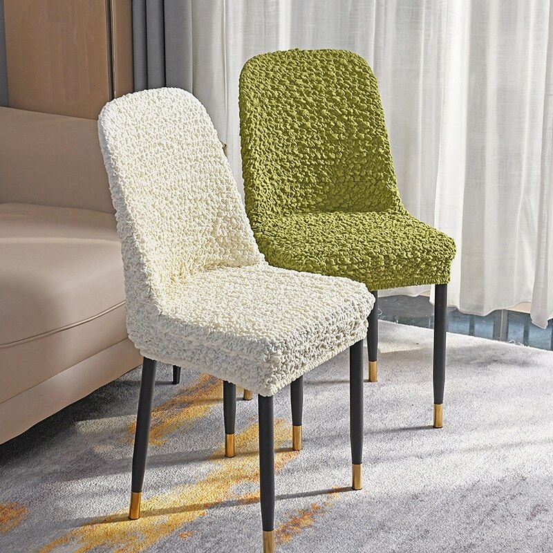 HOT ! Seersucker Chair Cover Wrinkle Fabric Dinning Chair Cover Curved Back Chair Slipcover Stretch Seat Protector Thicker Seat Cover for Dining Room Hotel Banquet