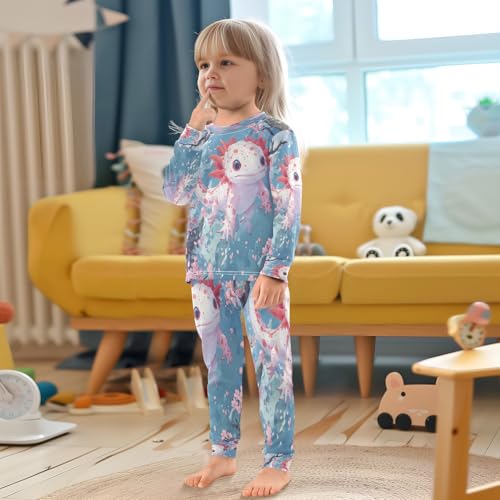Pajama Sets Long Sleeve Kawaii Axolotl Cherry Blossoms Soft Comfy Sleepwear 2 Piece PJS 3-8T 6