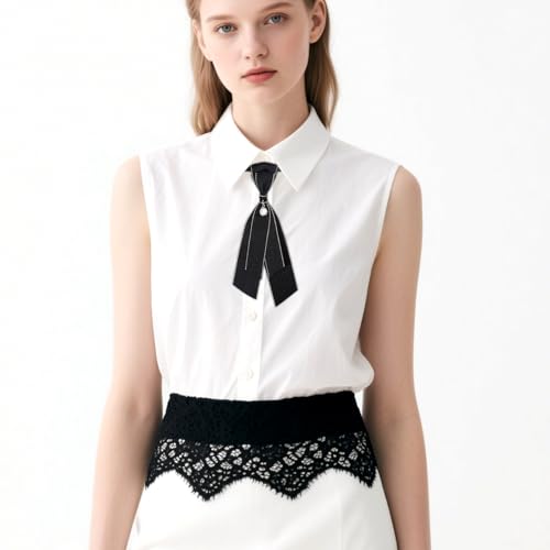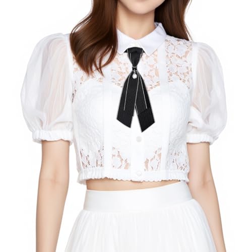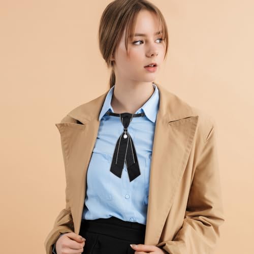2 Pcs Bow Tie for Women Adjustable Womens Tie Girls Uniform Ties Pre Tied Womens Necktie with Pearl Embellishment Accessory for Shirt Cosplay School Formal Events (Black) 7
