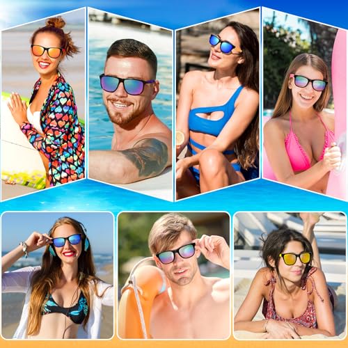 • Quality Material: colorful mirror reflective sunglasses are made of quality PC frame,which makes the party favor sunglasses with high impact strength and elasticity coefficient is more skin-friendly,lightweight and durable.These 80's retro sunglasses set are made from TAC lenses are impact and scratch resistant. Bulk sunglasses party favors gives you stress-free wearing experience which ensuring that you will be able to wear these party pack sunglasses through all seasons in comfort and style