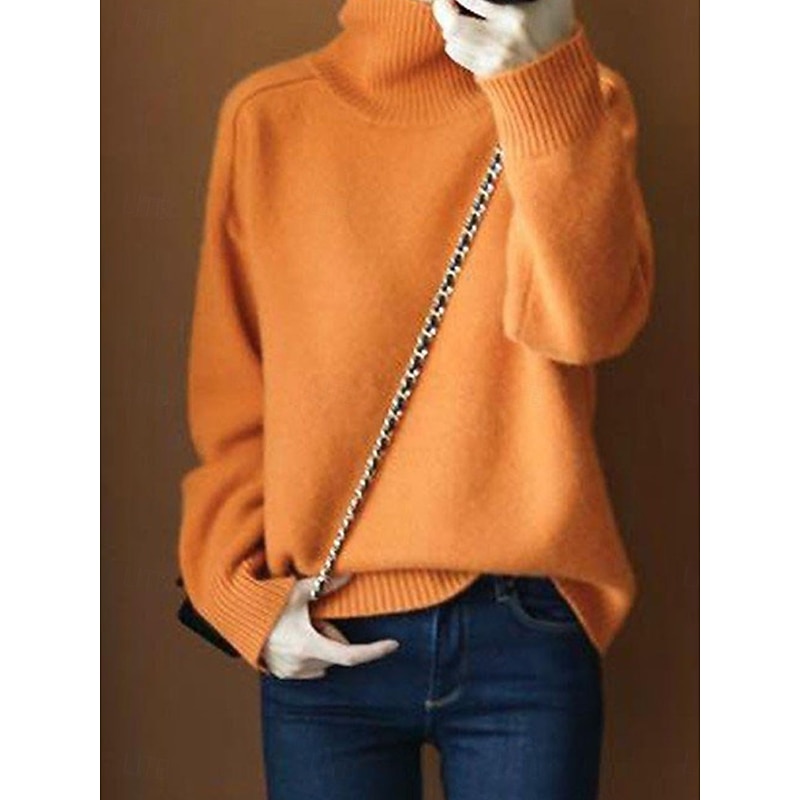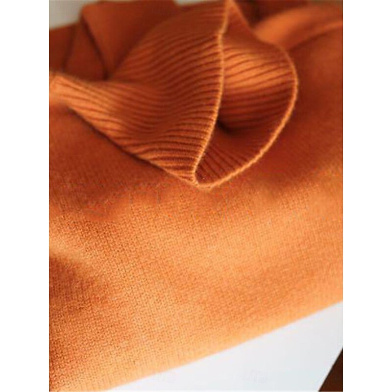 More information about Women's Sweater Pullover Sweater Jumper Casual Soft Pure Color Ribbed Turtleneck Knitted Long Sleeve Regular Tops Knit Outdoor Daily Weekend Navy Blue Orange Fall Winter